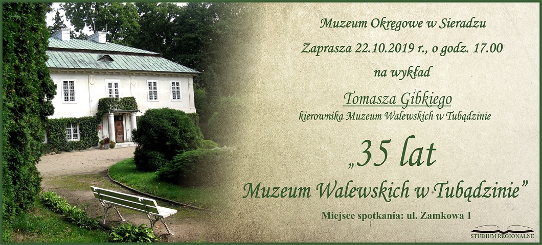 Muzeum Okręgowe w Sieradzu zaprasza we wtorek 22 października na wykład Tomasza Gibkiego "35 lat Muzeum Walewskich w Tubądzinie". Początek o godz. 17:00. Tydzień później w placówce zostanie otwarta nowa wystawa czasowa "Zabawki PRL-u" wypożyczona z Muzeum Zabawek w Kudowie Zdroju.