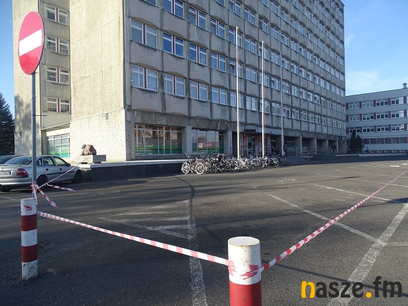 Z uwagi na fakt, że prowadzone będą roboty budowlane wysokościowe, teren wokół starostwa musi zostać ogrodzony. Dlatego konieczne jest odgrodzenie części parkingu przy budynku A.