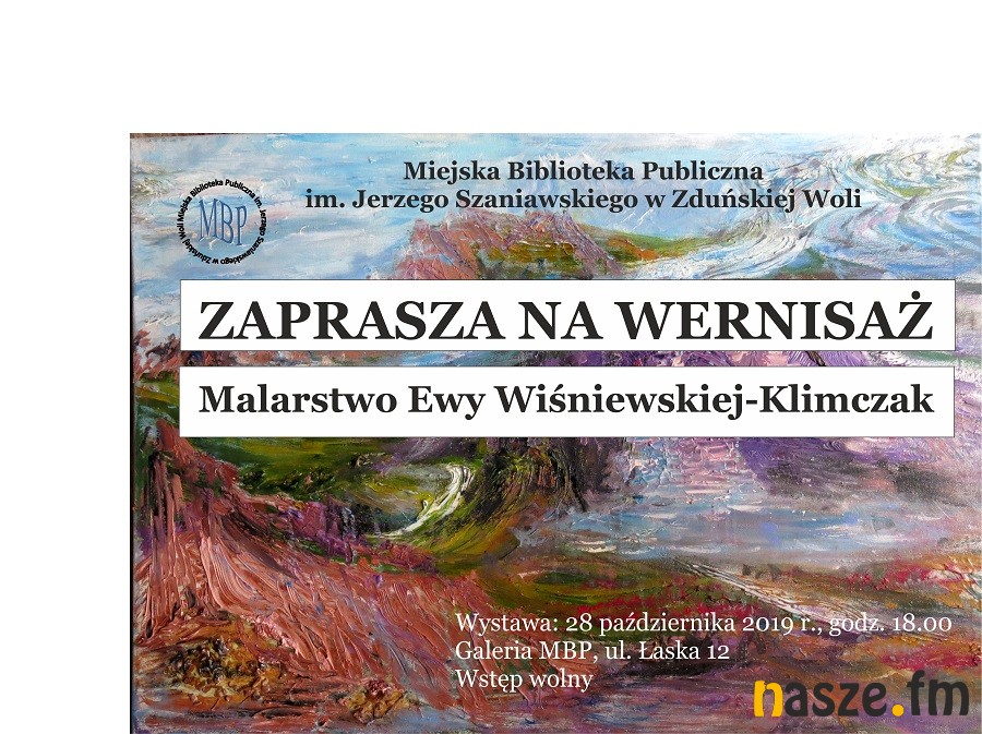 Miejska Biblioteka Publiczna im. Jerzego Szaniawskiego zaprasza na wernisaż malarstwa Ewy Wiśniewskiej Klimczak.To w najbliższy poniedziałek, 28 października.