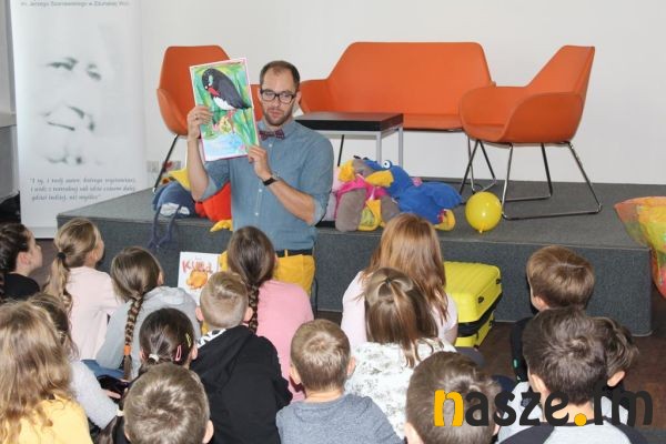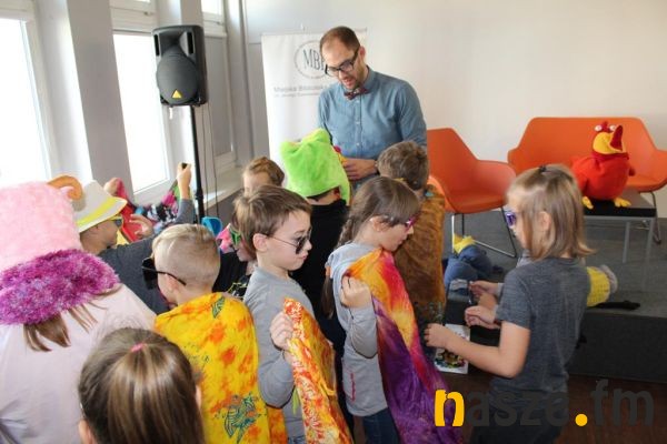 W Miejskiej Bibliotece Publicznej odbyło się bajkowe spotkanie z Panem Poetą - bajkopisarzem, autorem zabawnych rymowanych historii które uczą morałem, a bawią treścią. Zaproszony Gość opowiedział o drodze wydawniczej książki, jak ona powstaje, bawił się z dziećmi wykorzystując okulary, pacynki, baloniki.