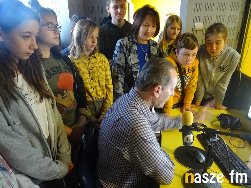 Dzisiejsza wizyta została zorganizowana w ramach doradztwa zawodowego. Uczniowie z klas 7 i 8 zobaczyli na czym polega praca prezentera radiowego, reportera i wydawcy serwisów.
