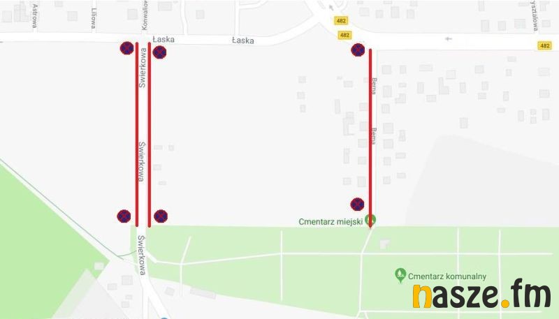 W przypadku cmentarza komunalnego przy ul. Bema w Zduńskiej Woli kierowcy będą mogli pozostawiać swoje pojazdy na parkingu, który zostanie utworzony przy tej ulicy. Zakaz parkowania będzie natomiast obowiązywał po prawej stronie ul. Bema. Do tego cmentarza można również się dostać od ul. Świerkowej, na której będzie obowiązywał obustronny zakaz zatrzymywania się (na odcinku od ul. Łaskiej do cmentarza), ale za to po prawej stronie tej ulicy wydzielony zostanie duży parking.