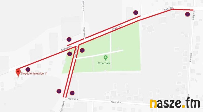 Przy cmentarzu na osiedlu Karsznice zabronione będzie parkowanie po stronie cmentarza przy ul. Staszica. Kierowcom udostępniony zostanie duży parking po drugiej stronie drogi. Zakaz zatrzymywania się będzie też wprowadzony jadąc z kierunku ul. Jodłowej (posesja nr 11) do ul. Kołłątaja oraz na ul. Poprzecznej po stronie cmentarza od ul. Staszica do ul. Kopernika.