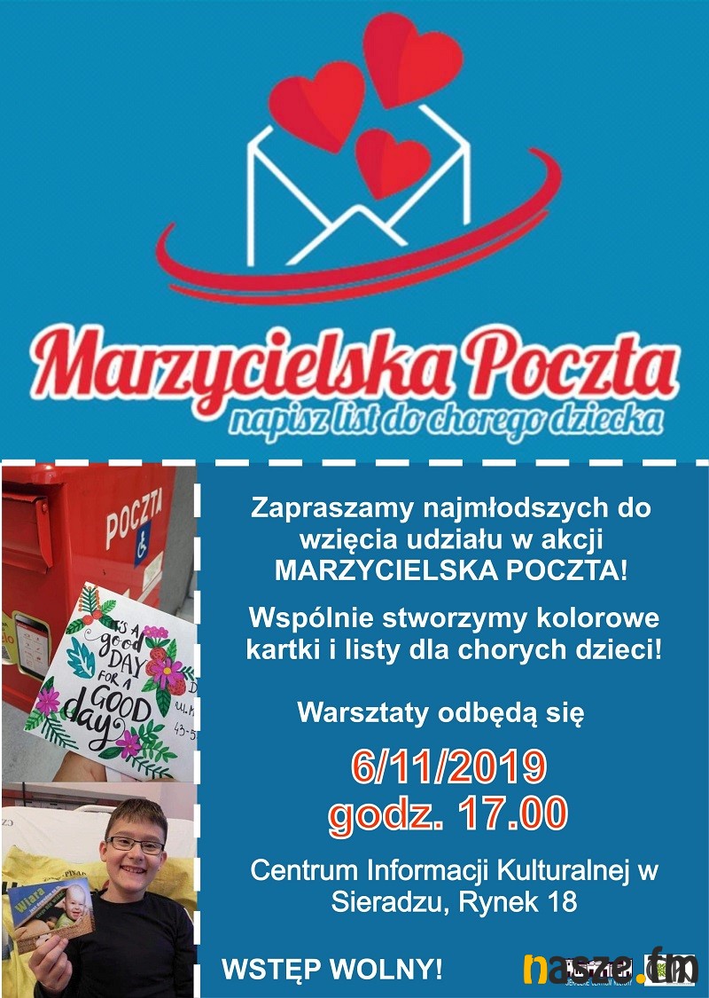 Centrum Informacji Kulturalnej w Sieradzu zaprasza jutro na warsztaty dla dzieci, podczas których będzie można wesprzeć ogólnopolską akcję Marzycielska Poczta.