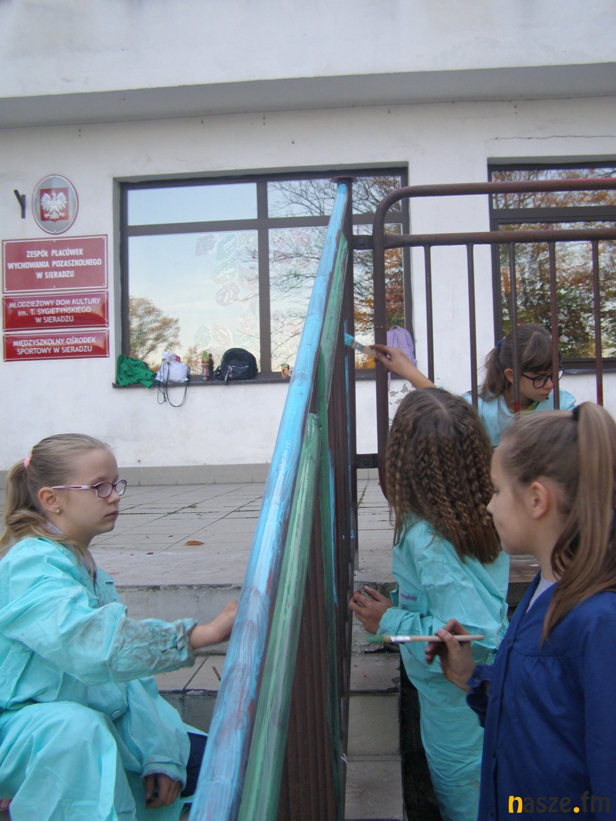 - Dzięki uprzejmości sponsora, młodzi malarze mieli do dyspozycji farby wodne do metalu, by nie szkodziły ich zdrowiu. Podłoże najpierw zostało fachowo przygotowane i oczyszczone papierem ściernym, potem pokryte ładnymi kolorami. Dzieci nabyły bardzo przydatne w życiu umiejętności posługiwania się tego typu farbami, dbania o otoczenie obiektu, z którego korzystają, pozytywnego wpływania na otaczający nas krajobraz. Z niecierpliwością czekamy na wiosnę, gdyż wtedy zakwitną cebulki krokusów posadzone przez dzieci na przylegającym do placówki trawniku.- mówi Zdzisława Budka z ZPWP w Sieradzu