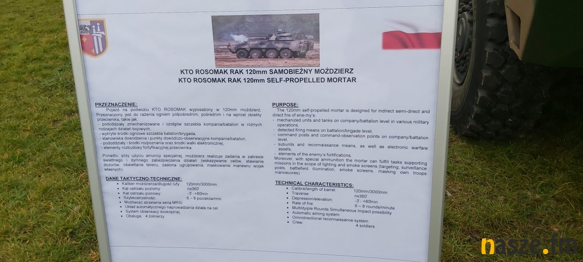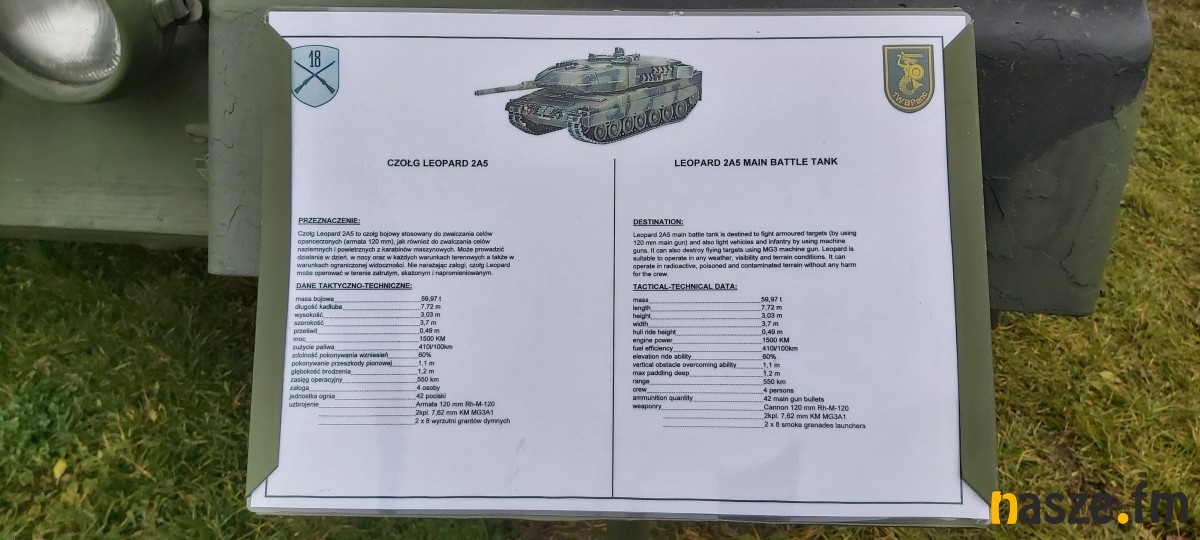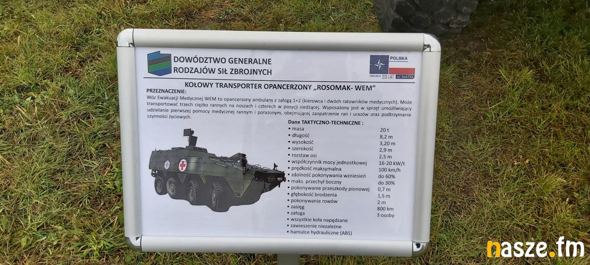Podczas pikniku można było zapoznać się z ciężkim sprzętem wojskowym. To m.in. czołg LEOPARD 2A5, haubica KRAB, moździerz RAK, wyrzutnia rakietowa WR - 40 LANGUSTA, kołowy transporter opancerzony ROSOMAK, kołowy transporter opancerzony ROSOMAK WEM, quad 4x4 8., lekka łódź rozpoznawcza.