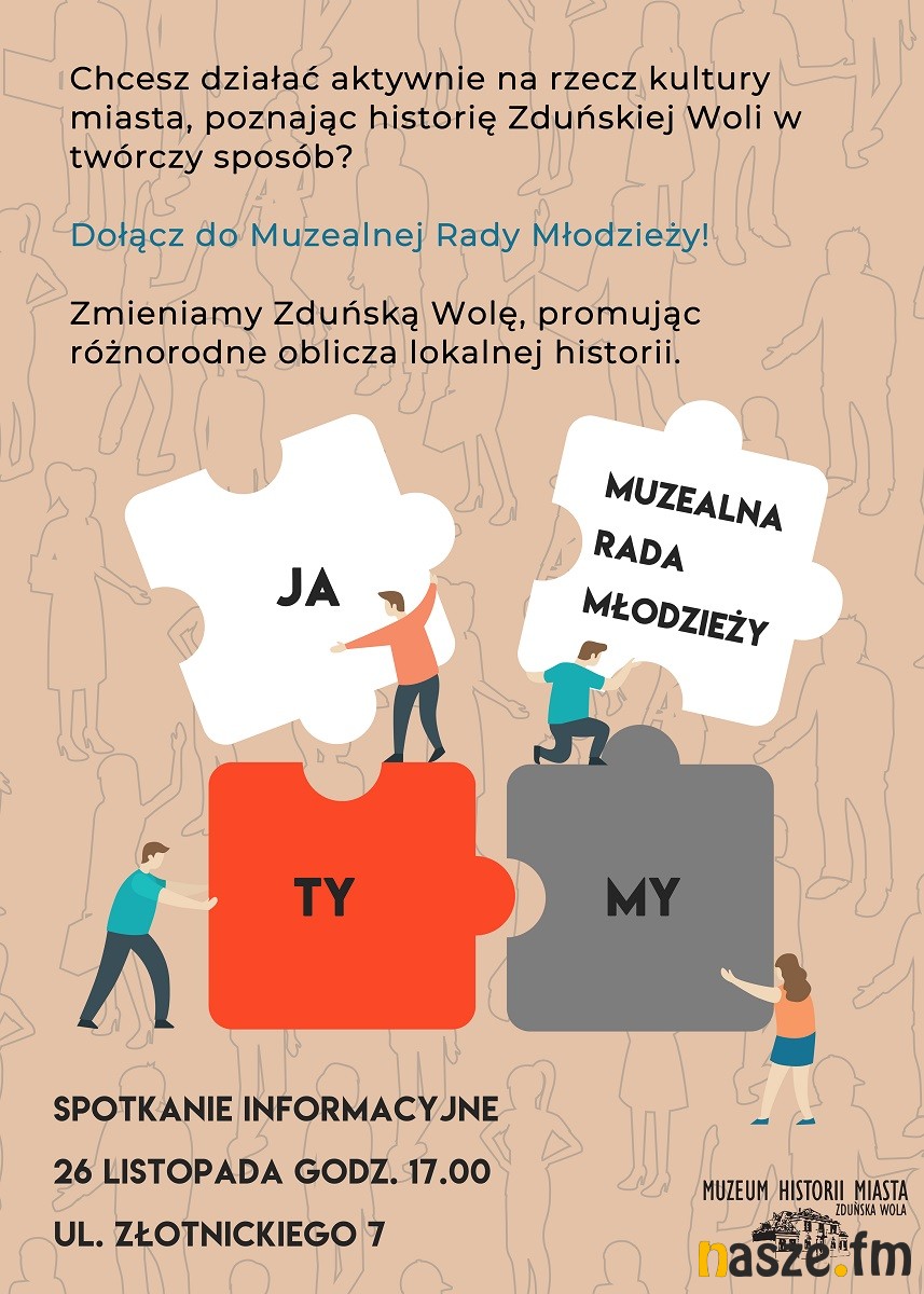 Na 26 listopada zaplanowano pierwsze spotkanie organizacyjne w sprawie powołania Muzealnej Rady Młodzieży. Początek o godz. 17:00 w siedzibie Muzeum Historii Miasta Zduńska Wola przy ul. Złotnickiego 7.