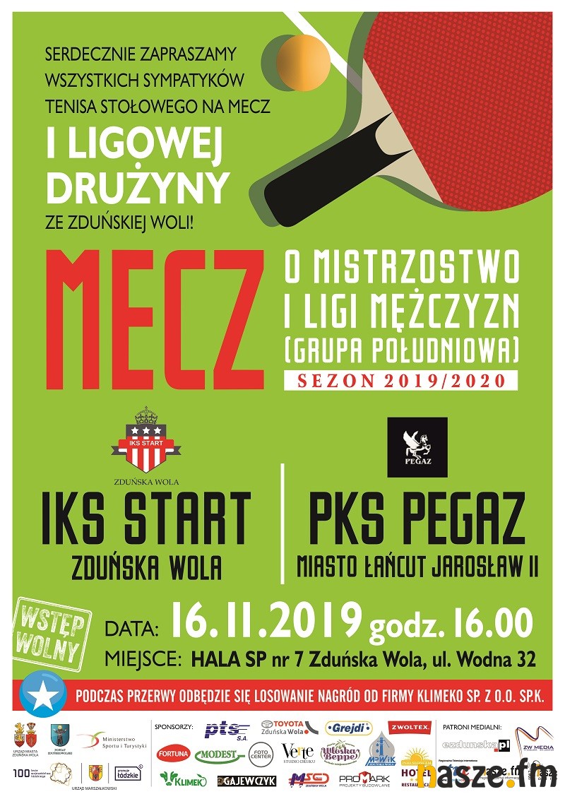 Klub IKS START Zduńska Wola zaprasza na mecz I ligi tenisa stołowego. W sobotę o 16:00 w hali Szkoły Podstawowej nr 7 w Zduńskiej Woli, podopieczni Bogusława Pabicha zagrają z PKS-em PEGAZ Miasto Łańcut Jarosław II.