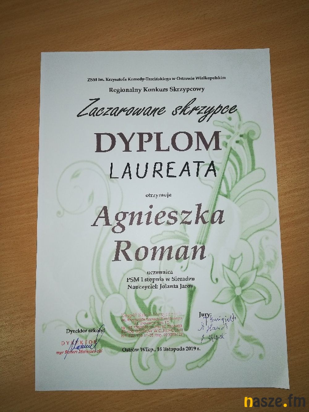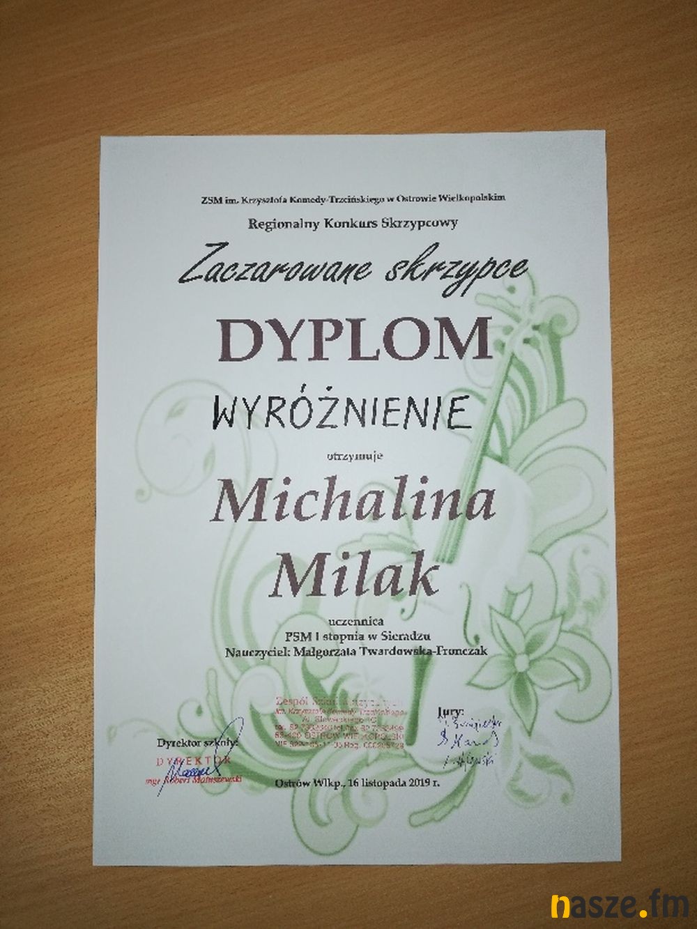 W Państwowej Szkole Muzycznej I i II st. w Ostrowie Wielkopolskim odbył Regionalny Konkurs Skrzypcowy "Zaczarowane skrzypce". Wzięło w nim udział 21 uczniów z 8 szkół.