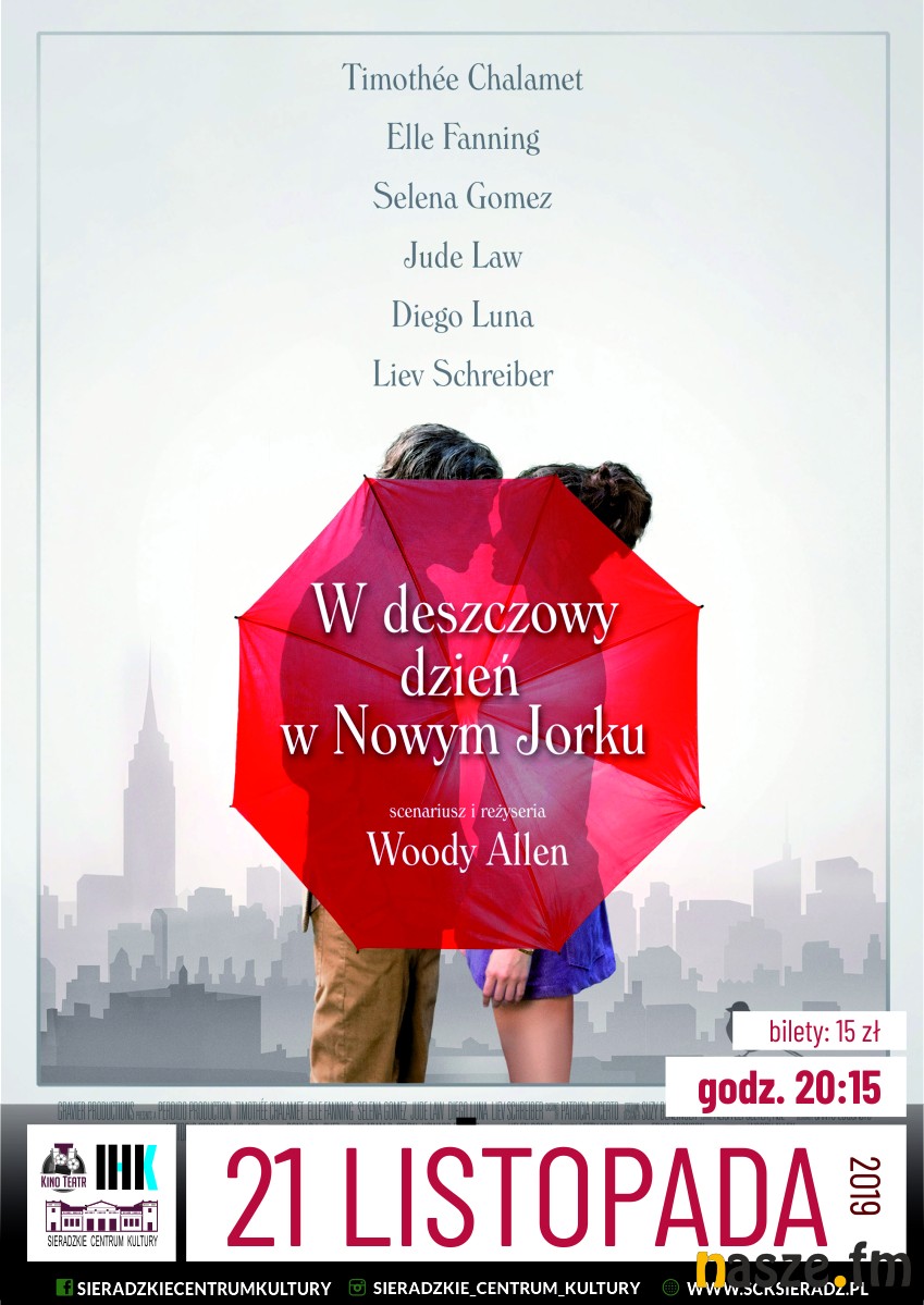 "W deszczowy dzień w Nowym Jorku" to kolejny film, który zostanie zaprezentowany w ramach cyklu organizowanego przez Sieradzkie Centrum Kultury - "Inne horyzonty kina". Seans zaplanowano na czwartek, 21 listopada, na godz. 20:15.