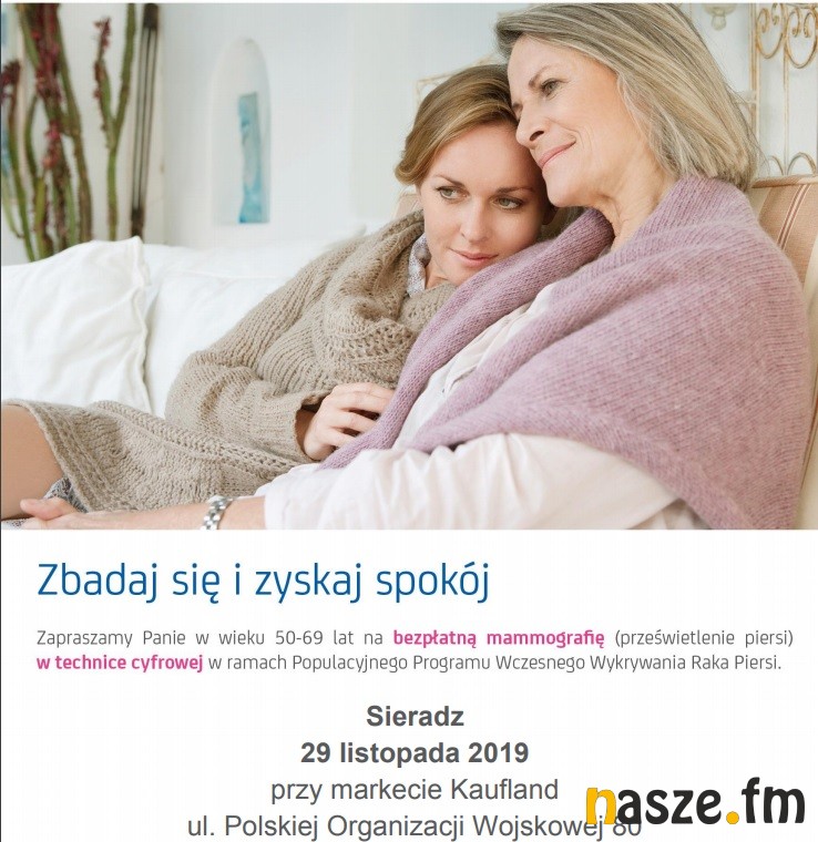 W piątek, 29 listopada, przy markecie Kaufland w Sieradzu będzie można wykonać badania mammograficzne. Skierowane są dla kobiet w wieku 50-69 lat. Badania wykonywane są w ramach Programu Profilaktyki Raka Piersi finansowanego przez NFZ.