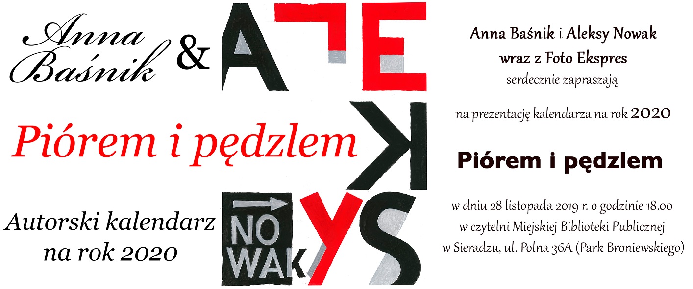 W czwartek 28 listopada w czytelni Miejskiej Biblioteki Publicznej (Park Broniewskiego) w Sieradzu zaplanowano spotkanie promocyjne wyjątkowego kalendarza. Znajdziemy w nim prace twórców pochodzących z tego miasta. Początek spotkania o godz. 18:00.