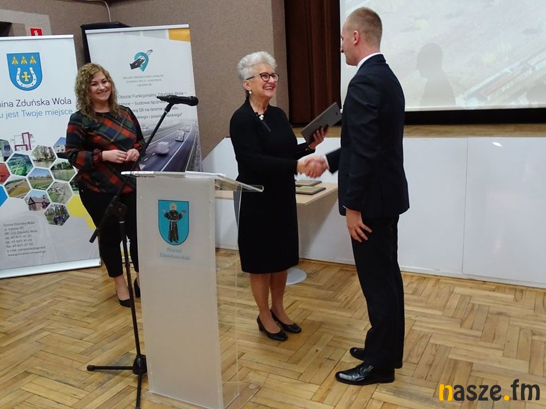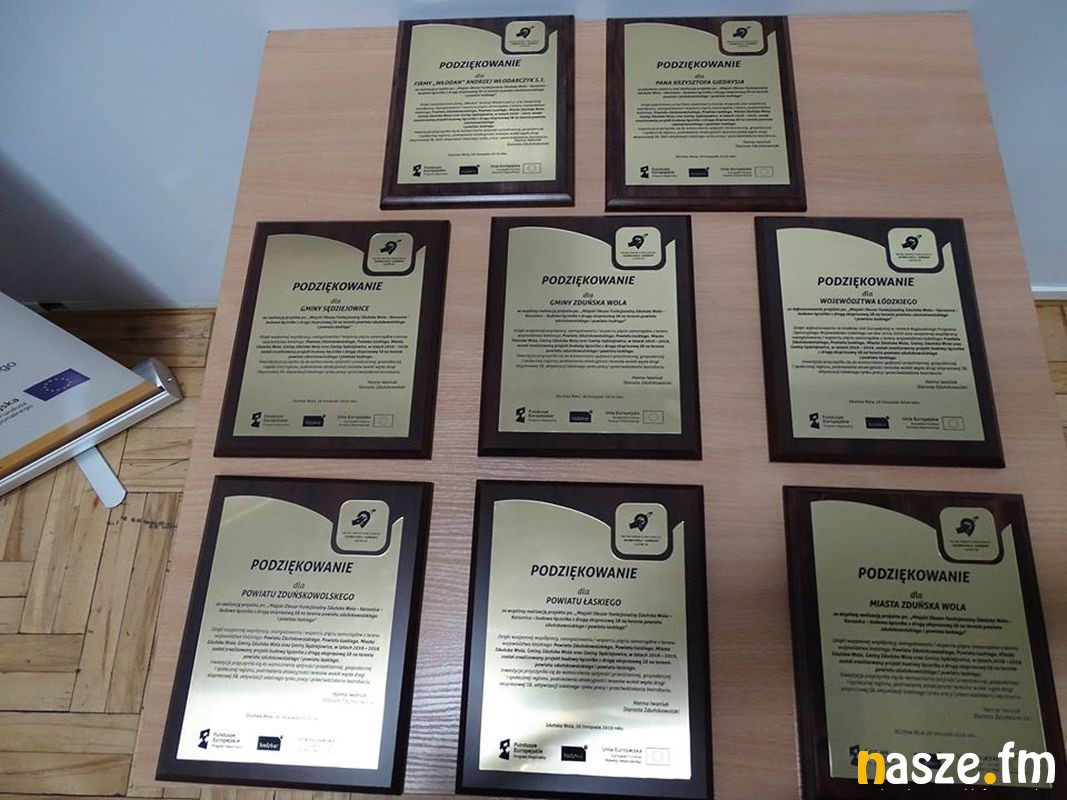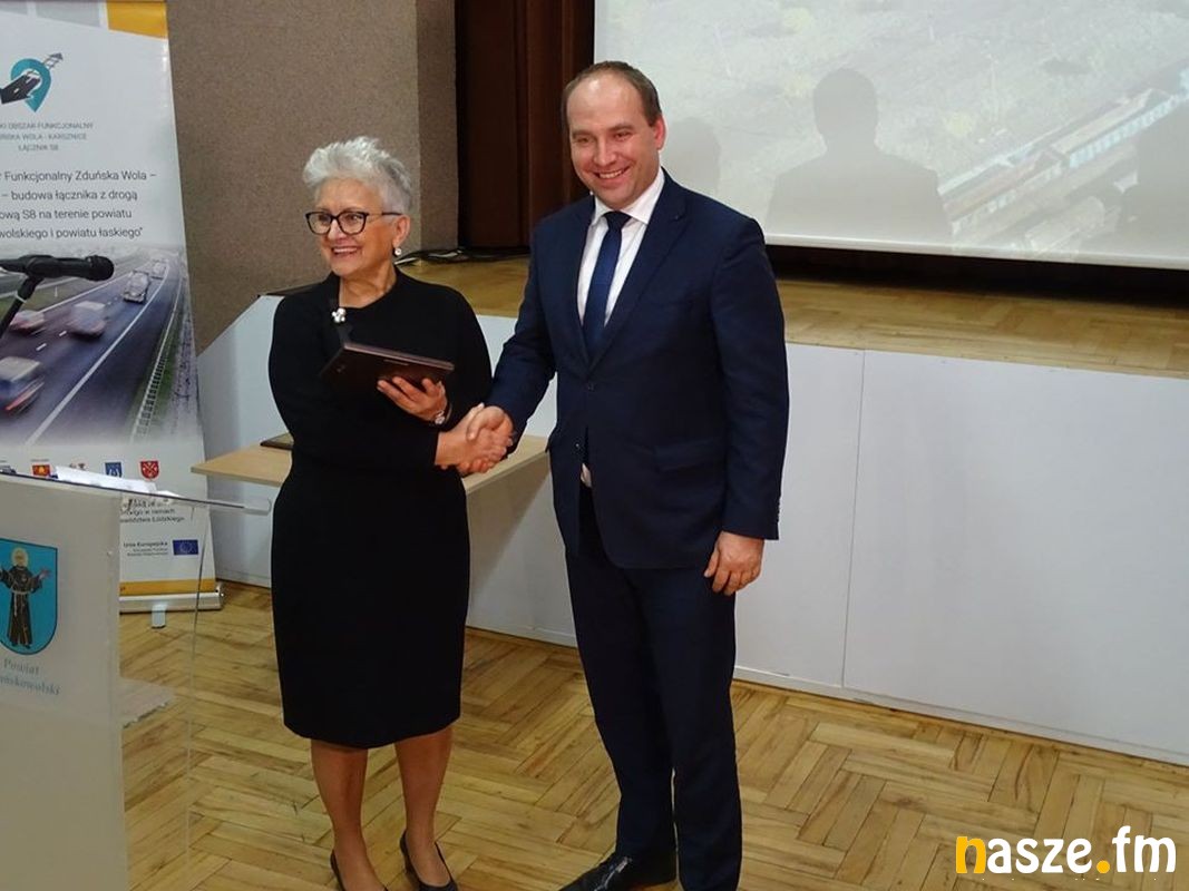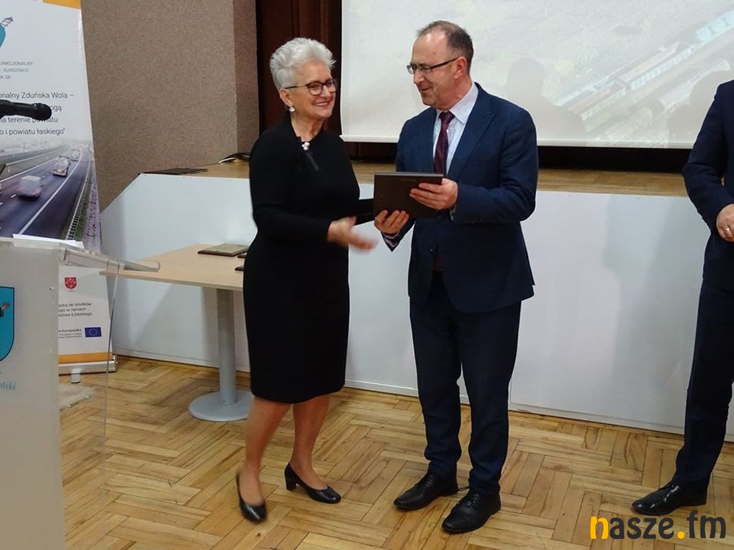 Starosta Hanna Iwaniuk wręczyła symboliczne podziękowania samorządom i instytucjom zaangażowanym w jego realizację - przedstawicielom Powiatu Łaskiego, Miasta Zduńska Wola, Gminy Zduńska Wola, Gminy Sędziejowice, Województwa Łódzkiego, firmy Włodan oraz inspektora nadzoru.