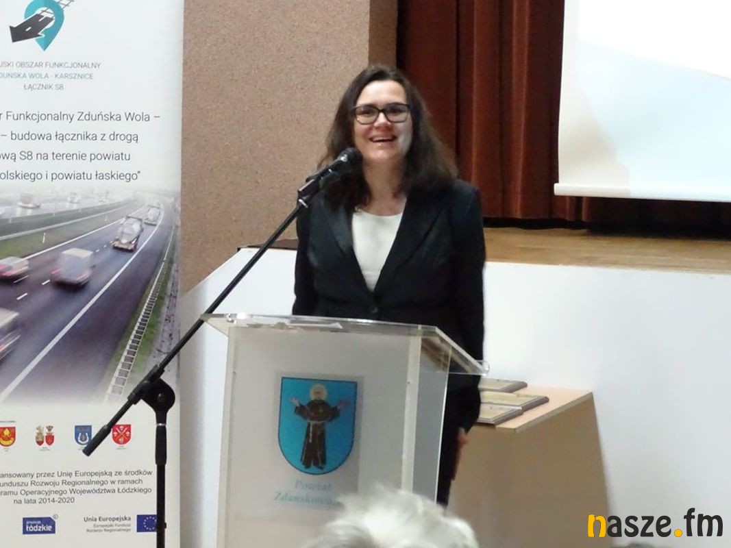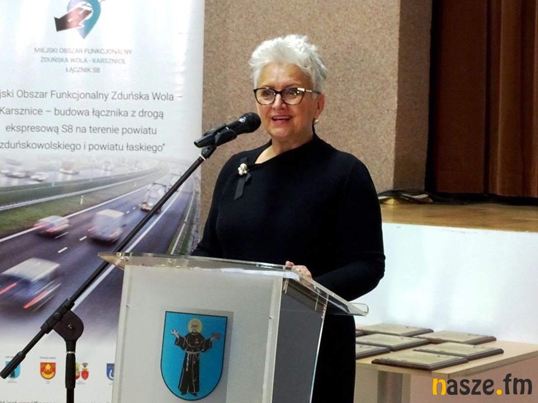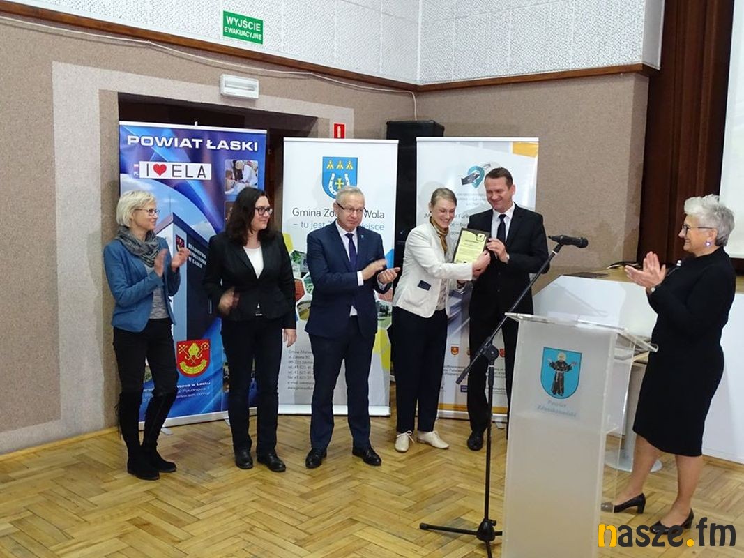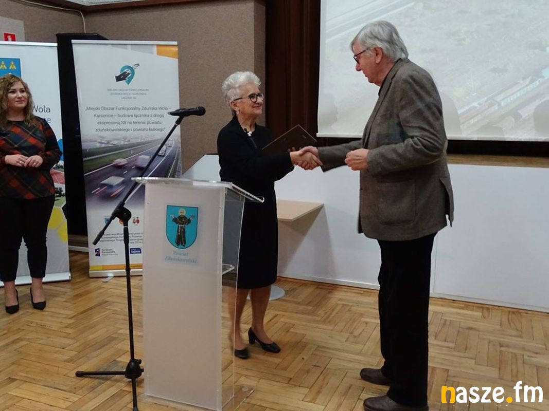 Starosta Hanna Iwaniuk wręczyła symboliczne podziękowania samorządom i instytucjom zaangażowanym w jego realizację - przedstawicielom Powiatu Łaskiego, Miasta Zduńska Wola, Gminy Zduńska Wola, Gminy Sędziejowice, Województwa Łódzkiego, firmy Włodan oraz inspektora nadzoru.