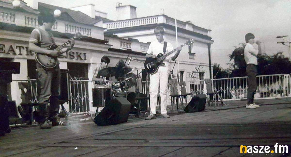 Koncert przed Teatrem Miejskim w Sieradzu, rok 1984. Od lewej: Jarek Kocoń, Piotrek Cajdler, Waldek Łoziński, Kuba Janczar.