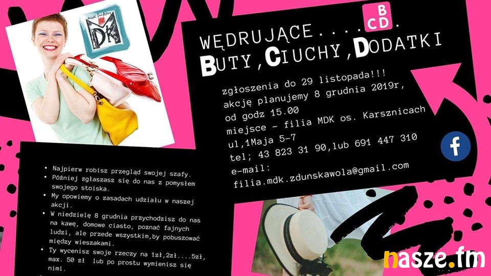 Wędrujące buty, ciuchy, dodatki – to wydarzenie, na które już dzisiaj zaprasza filia Miejskiego Domu Kultury w Karsznicach. Będzie to okazja, do tego, by kupić wiele ciekawych rzeczy w bardzo atrakcyjnych cenach.