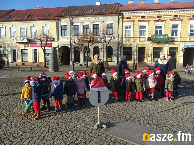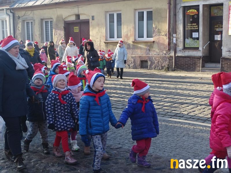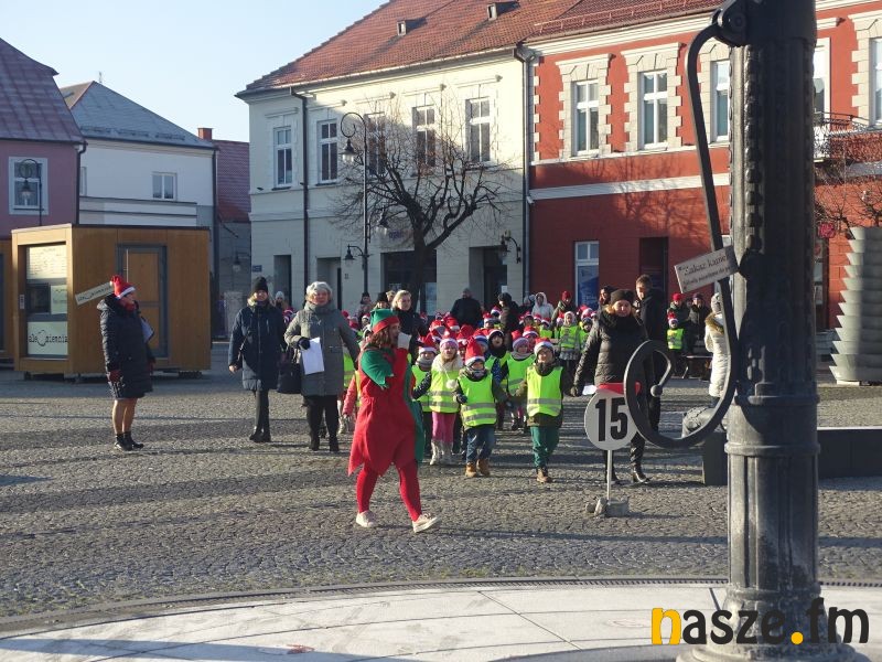 Część przedszkolaków rozpoczęła rajd od bram miasta przy Kolegiacie, w kierunku rynku. Każda grupa rajdowa byłą pod opieką przewodnika z PTTK, który krótko opowiedział historię Sieradza związaną z bramami miasta oraz rolą rynku dawniej i dziś. W drodze do rynku dzieci dowiedziały się też o ważnych miejscach Sieradza. Na rynku czekał Mikołaj, dla którego dzieci zaśpiewały też piosenki: