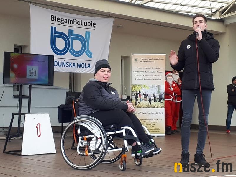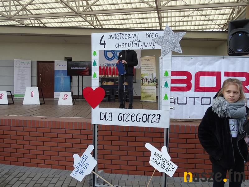 Podczas imprezy zbierano pieniądze dla Grzegorza Marczewskiego – ucznia II LO w Zduńskiej Woli, który choruje na dystrofię mięśniową Duchenne’a, powodującą zanik mięśni. Grzegorz od 7 lat porusza się na wózku inwalidzkim. Aby polepszyć jego warunki życia, organizatorzy Świątecznego Biegu Charytatywnego zbierali na nowy wózek elektryczny.