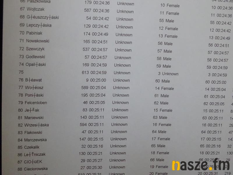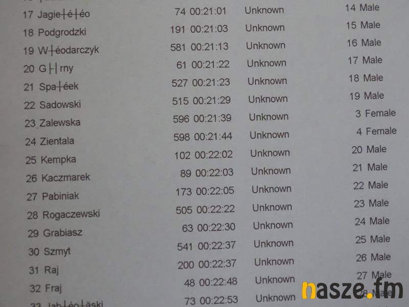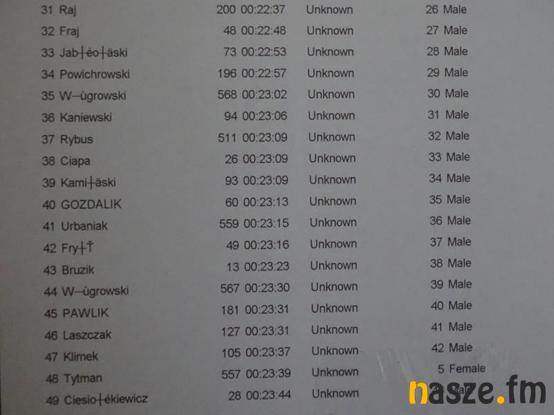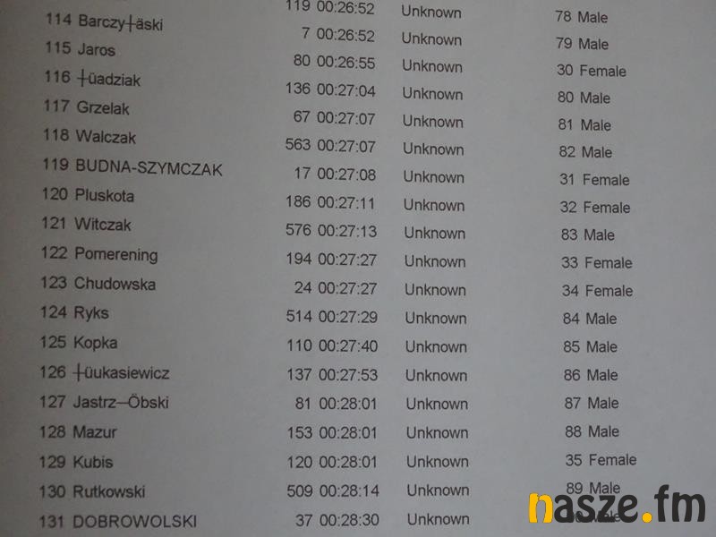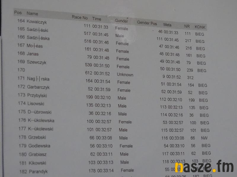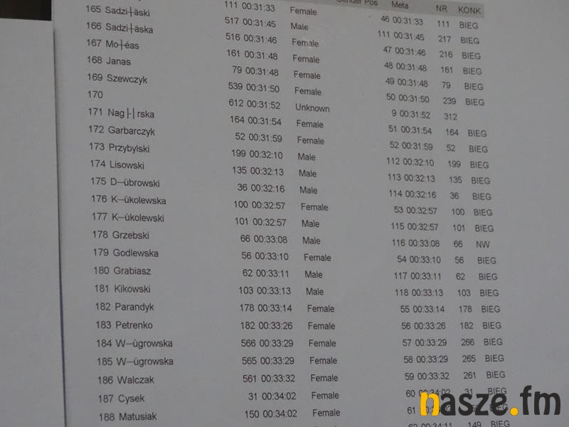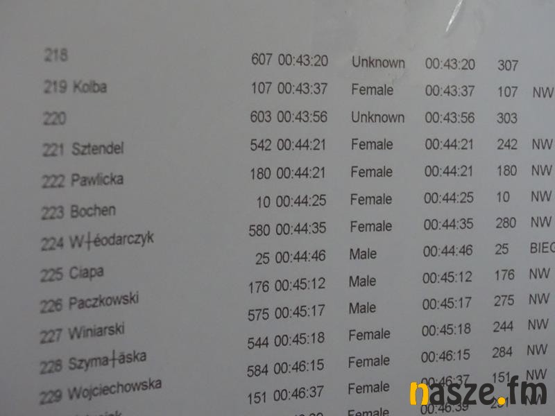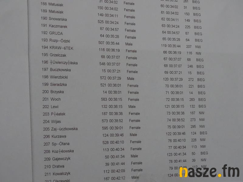 Wśród pań wygrała Arleta Matysiak (20:24) przed Katarzyną Ostojską (20:35) i Anną Zalewską (21:39).