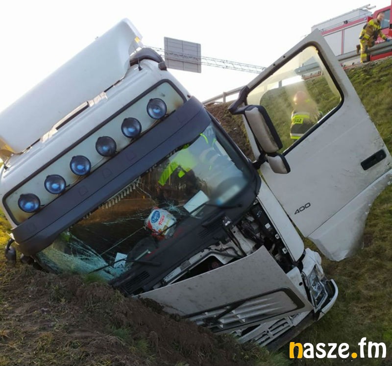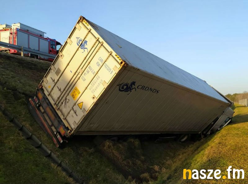 Dziś w nocy na drodze ekspresowej S8 na wysokości miejscowości Czechy samochód ciężarowy wypadł z drogi, po czym zjechał ze skarpy. Jak się okazało kierowca tira zasnął za kierownicą.