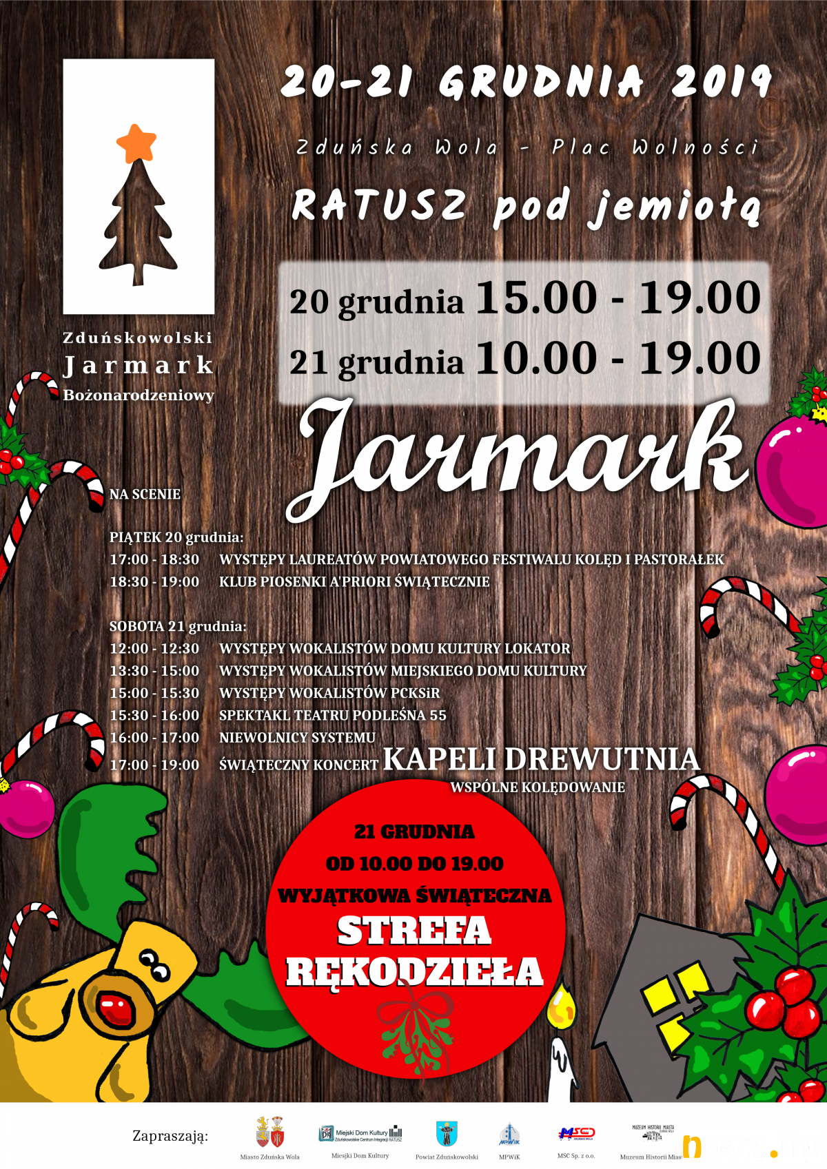 Podczas Jarmarku wspaniały, świąteczny koncert da zespół Drewutnia, który również wszystkich mieszkańców zaprosi do wspólnego kolędowania. Koncert rozpocznie się o godz. 17:00.