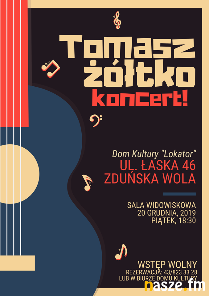 Dom Kultury "Lokator" w Zduńskiej Woli zaprasza dzisiaj na koncert Tomasza Żółtko - muzyka, kompozytora, poety i publicysty. Wiele z jego piosenek zmusza do refleksji, głębszego spojrzenia na siebie i otaczającej nas rzeczywistości.