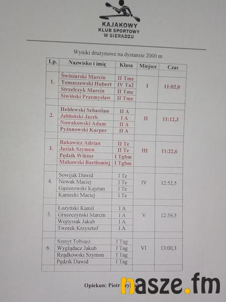 Oficjalne uroczyste wręczenie medali, pucharów i upominków przez dyrekcje ZSP nr 1 w Sieradzu oraz Kajakowy Klub Sportowy w Sieradzu dla chłopców odbędzie się na początku 2020 roku.