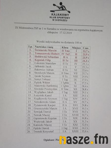 W Zespole Szkół Ponadgimnazjalnych nr 1 w Sieradzu odbyły się IX Mistrzostwa w wiosłowaniu na ergometrze kajakowym chłopców. Wcześniej podobne zawody odbyły się dla dziewczyn.