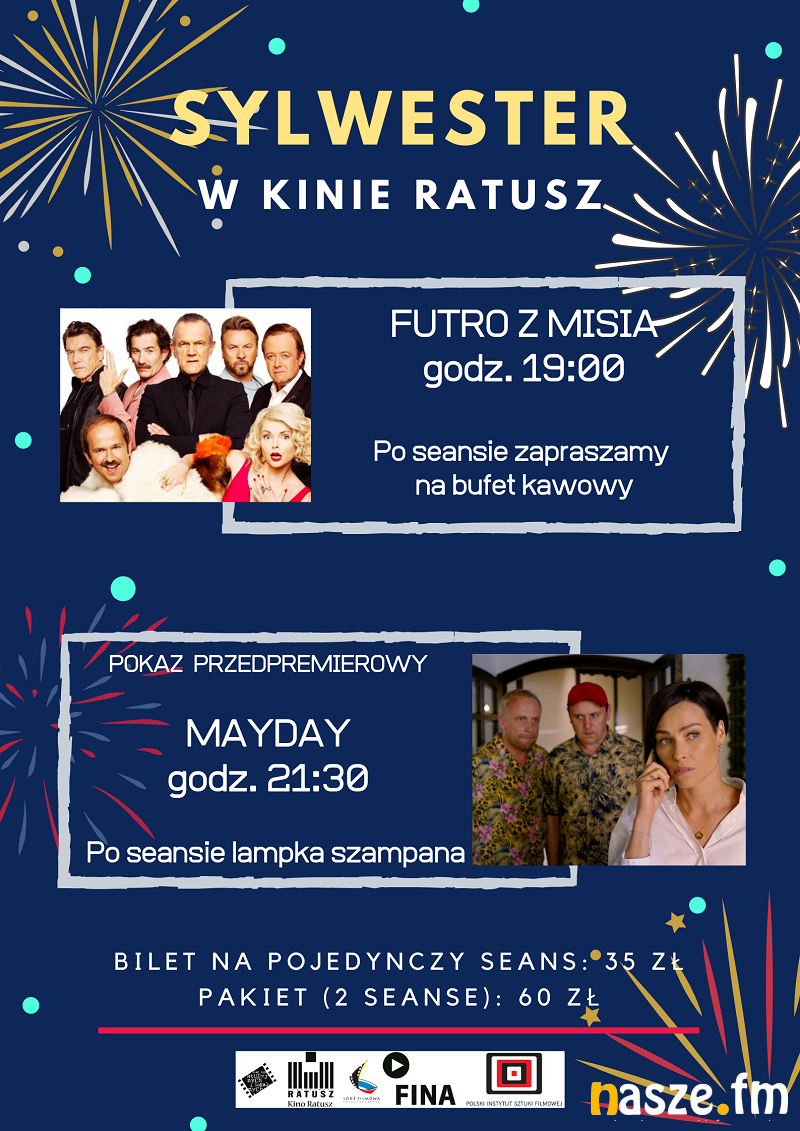 Pierwsza z filmowych propozycji to Futro z misia (projekcja o godz. 19:00). O 21:30 Kino Ratusz zaprasza na pokaz przedpremierowy filmu Mayday. Po pierwszym seansie będzie można skorzystać z bufetu kawowego, po drugim zapraszamy na lampkę szampana.