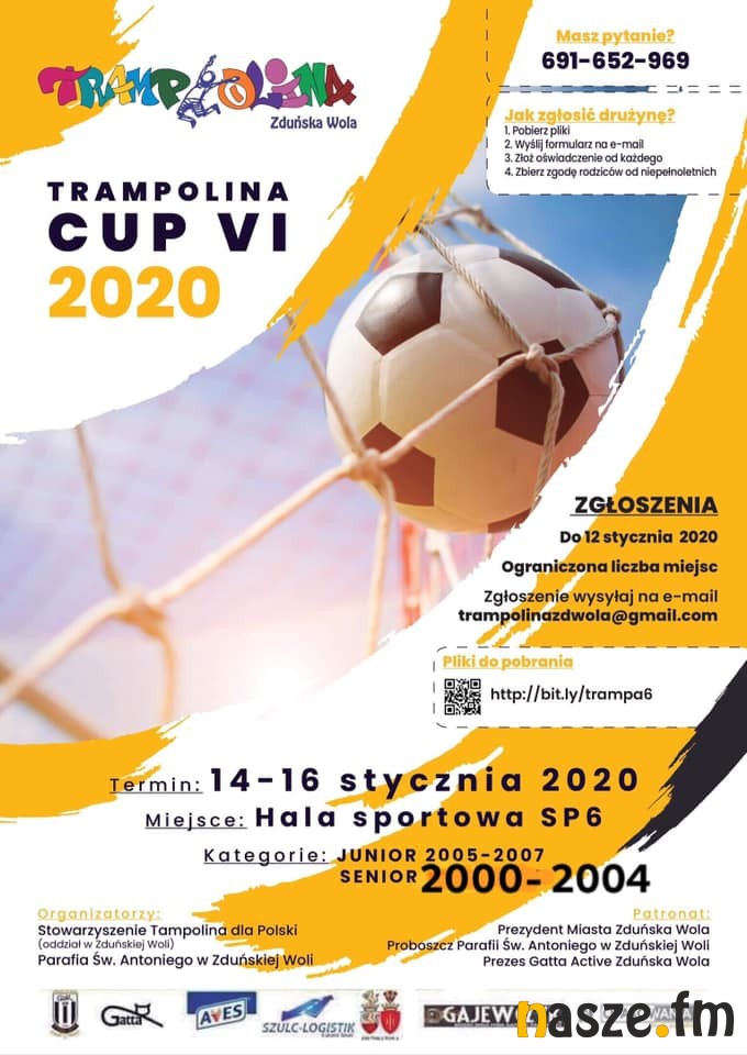 Klub Młodzieżowy Trampolina w Zduńskiej Woli zaprasza do udziału w VI edycji turnieju Trampolina CUP w halowej piłce nożnej. Rozgrywki tradycyjnie odbędą się podczas nadchodzących ferii zimowych. Trwają zapisy.