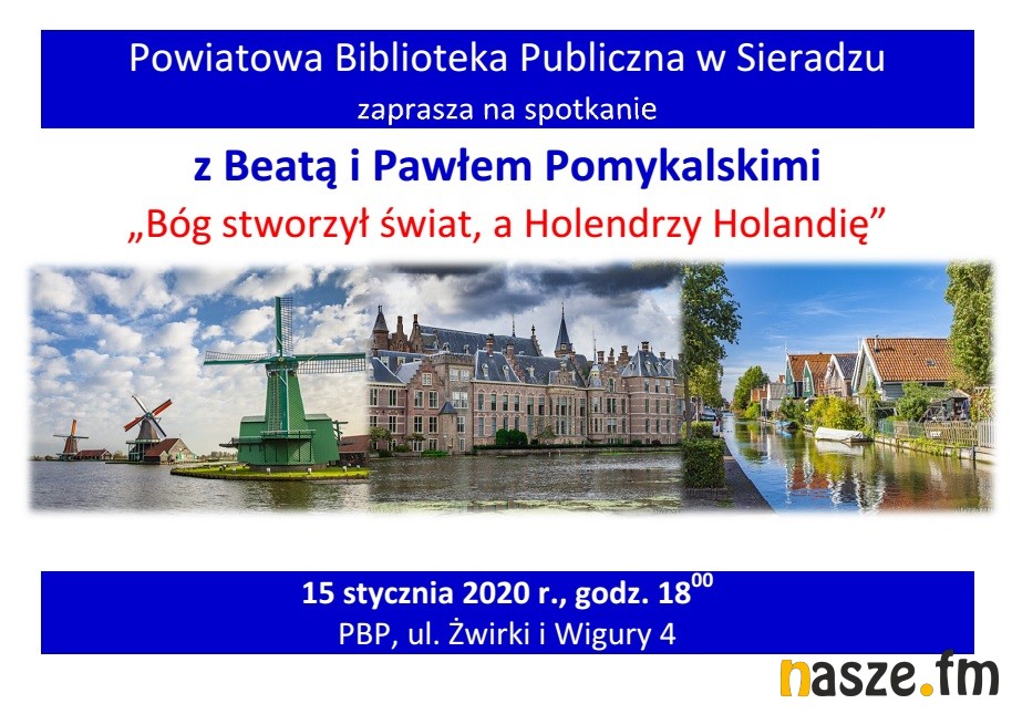Co sprawia, że w Niderlandach to powiedzenie cieszy się dużą popularnością i wydaje się być całkowicie uzasadnione? Na to pytanie odpowiedzą Beata i Paweł Pomykalscy. Na spotkanie z podróżnikami w środę 15 stycznia zaprasza Powiatowa Biblioteka Publiczna w Sieradzu, początek o godz. 18:00, wstęp wolny.