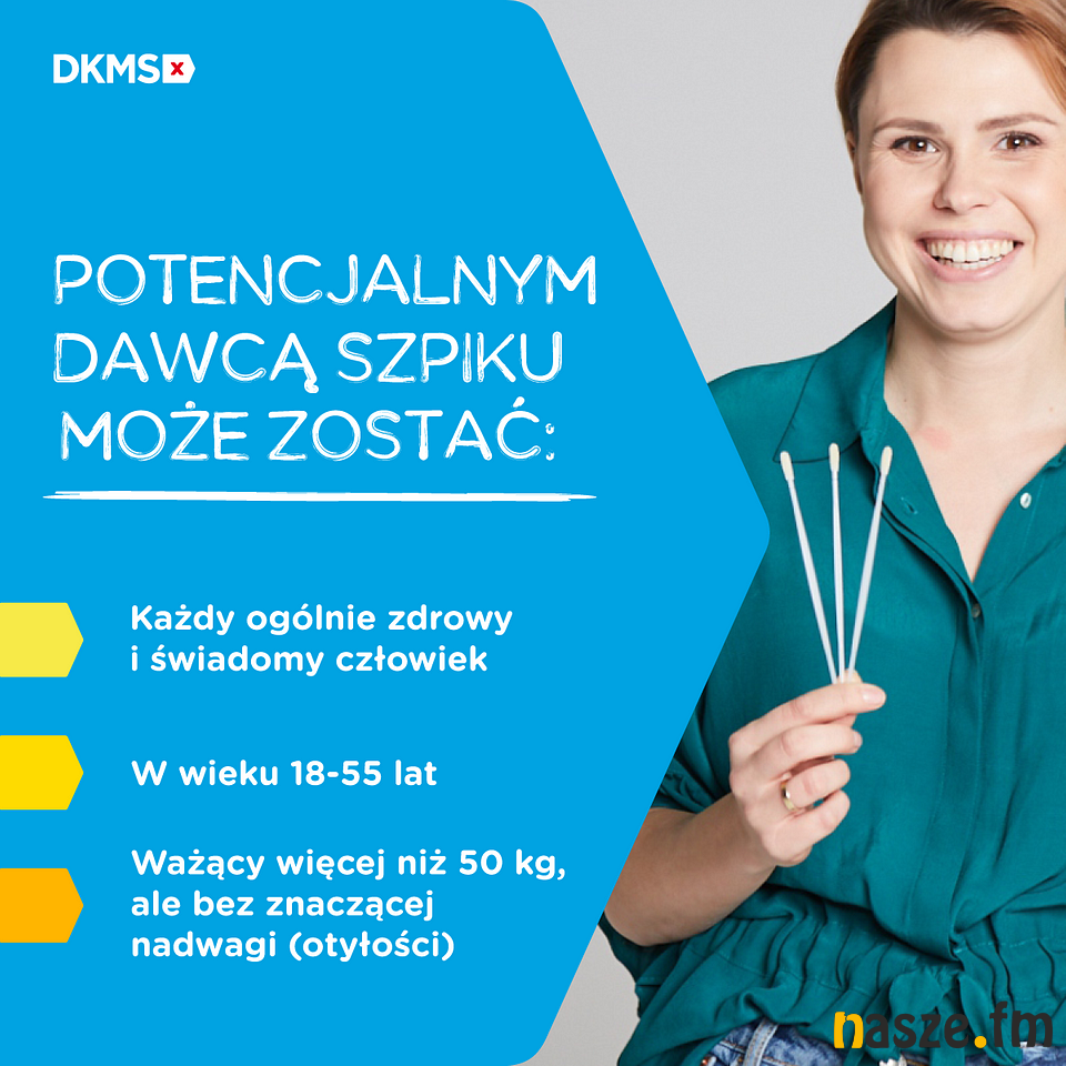 Potencjalnym Dawcą szpiku może zostać każdy, kto chce pomóc, jest ogólnie zdrową osobą pomiędzy 18. a 55. rokiem życia, i waży nie mniej niż 50 kg - ale też nie zmaga się z otyłością. Żeby dołączyć do bazy Dawców Fundacji DKMS, wystarczy wejść na stronę https://www.dkms.pl/pl/zostan-dawca i zamówić darmowy pakiet do samodzielnego pobrania wymazu, z wewnętrznej strony policzka. Te kilka minut może uratować komuś życie.