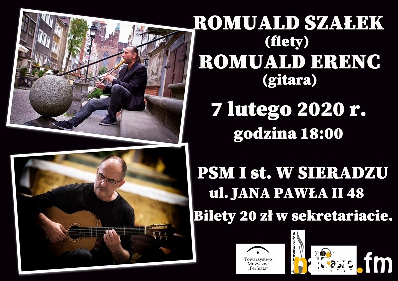 Państwowa Szkoła Muzyczna I St. w Sieradzu zaprasza 7 lutego na wyjątkowy koncert. Na scenie wystąpi flecista Romuald Szałek, który będzie grał (czasami) na 2 fletach jednocześnie, a do tego dołączy wokalizę - pojawi się też trzygłos. Towarzyszył mu będzie Romuald Erenc, który zagra na gitarze.