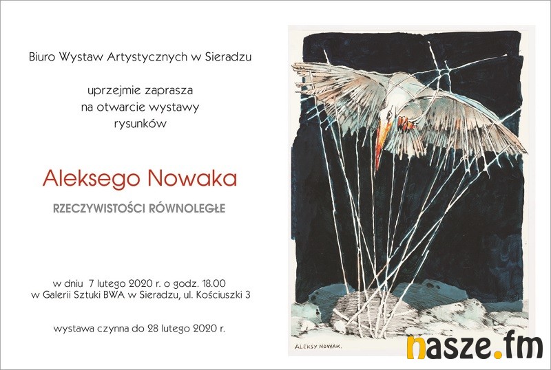 Biuro Wystaw Artystycznych w Sieradzu zaprasza 7 lutego na otwarcie wystawy rysunków Aleksego Nowaka "Rzeczywistości równoległe". Artysta jest autorem kalendarzy, ilustruje też książki i tomiki poezji.