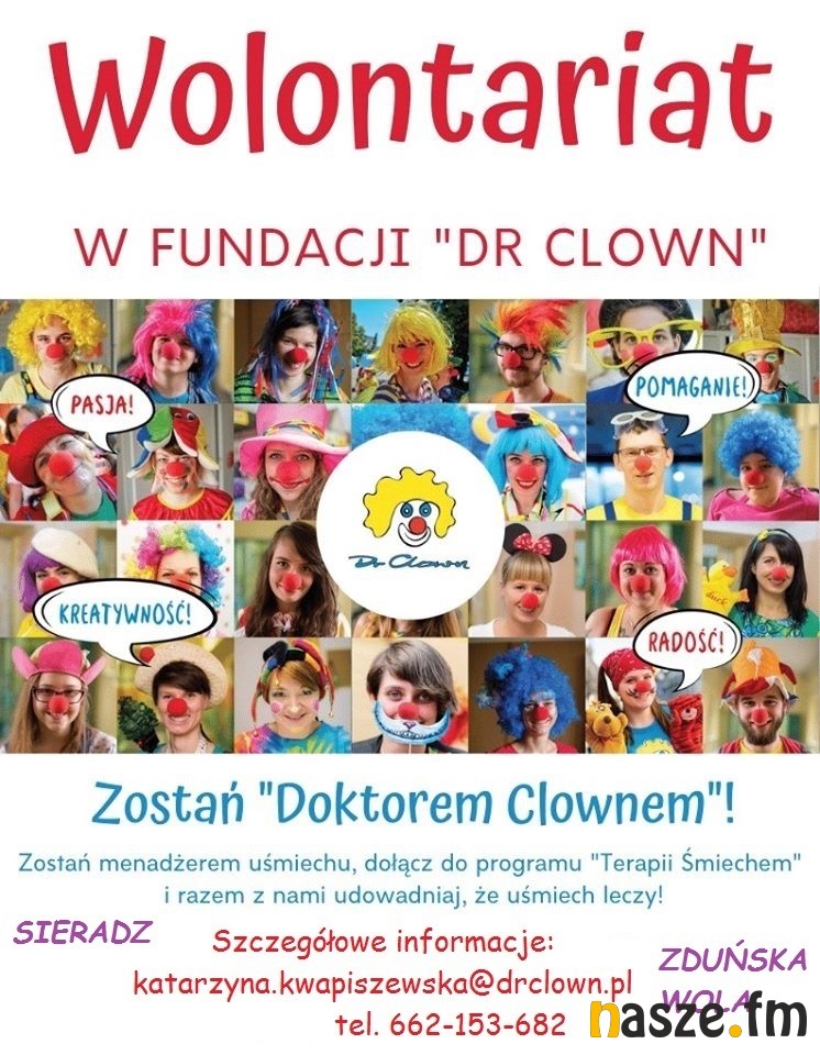 - Udział w wolontariacie oferuje Ci wiele korzyści, m.in. rozwój - wszechstronne szkolenia - począwszy od kuglarstwa a skończywszy na warsztatach krawieckich. Każda posiadana przez Ciebie umiejętność, staje się Twoim atutem i czyni Cię wyjątkowym Doktorem Clownem! Wolontariat daje możliwość poznawania ludzi i przyjaciół z całego kraju, którzy działają w tej samej inicjatywie. Coroczne spotkania, festyny i festiwale zbliżają do siebie wolontariuszy z całej Polski! Jednak pierwszorzędną korzyścią jest uśmiech i radość pacjentów, których odwiedzamy w placówkach. A zarazem wniesienie na szpitalne oddziały magię, zabawę i szczęście- zachęca Katarzyna Kwapiszewska, pełnomocnik fundacji Dr Clown Oddział w Sieradzu