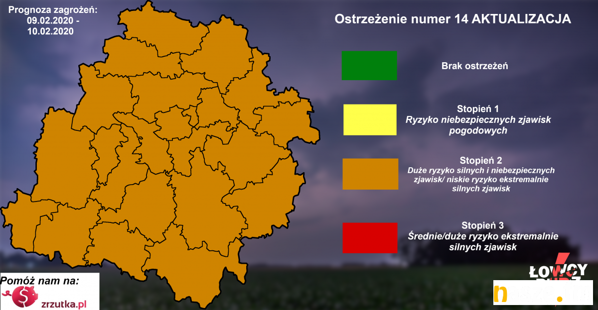 - 2 stopień wydajemy ze względu na możliwość wykształcenia się linii szkwału, niestety spodziewana jest na godziny nocne i dla wielu nieobserwujących radarów pogodowych uderzyć może z zaskoczenia z porywami przekraczającymi 100km/h. Prosimy o zabezpieczanie wszystkich przedmiotów, które może porwać wiatr. Szczególnie prosimy o zabezpieczanie przedmiotów na balkonach. Ponadto zalecamy aby nie parkować samochodów pod drzewami i reklamami - czytamy w komunikacie przesłanym do naszej redakcji.