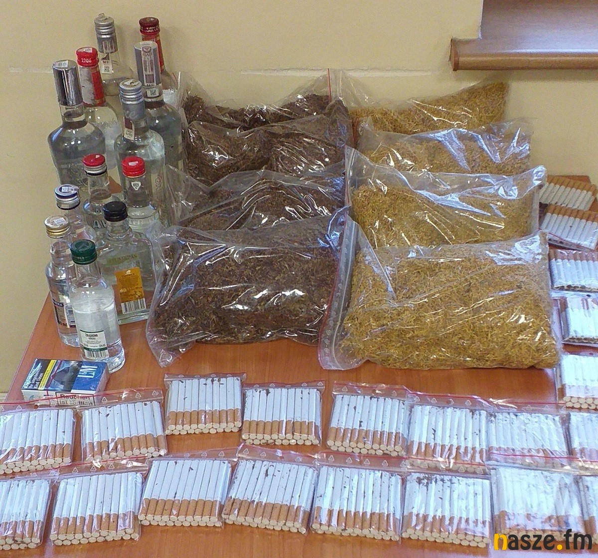 Policjanci zajmujący się zwalczaniem przestępczości gospodarczej ustalili, że jeden z mieszkańców Zduńskiej Woli może handlować towarami bez polskich znaków akcyzy. Wczoraj pojechali pod wytypowany adres, aby sprawdzić tę informację. Podczas przeszukania w miejscu zamieszkania 54-latka znaleźli 3,6 litra alkoholu, prawie 4 kilogramy tytoniu oraz 440 sztuk papierosów niewiadomego pochodzenia. Mężczyzna odpowie za paserstwo skarbowe za co grozi wysoka grzywna.