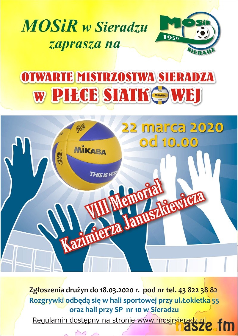 Do 18 marca można wysyłać zgłoszenia na Otwarte Mistrzostwa Sieradza w Piłce Siatkowej. Zawody odbędą się 22 marca w hali sportowej przy ul. Łokietka 55 oraz hali przy Szkole Podstawowej nr 10 w Sieradzu.