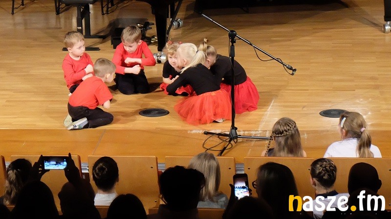Koncert rozpoczął się od występu młodszej grupy tanecznej. Dzieci ze starszej grupy tanecznej przedstawili Interpretację ruchową przygotowani przez swoją nauczycielkę Magdalenę Ristau. Wystąpili również pianiści z klas pań Elżbiety Górskiej, Izabeli Rudzkiej – Kosieradzkiej i Katarzyny Antoniak – Kropat. Gitarzyści, uczący się u pani Magdaleny Kowalczyk, grali solo oraz w duecie ze swoją nauczycielką.