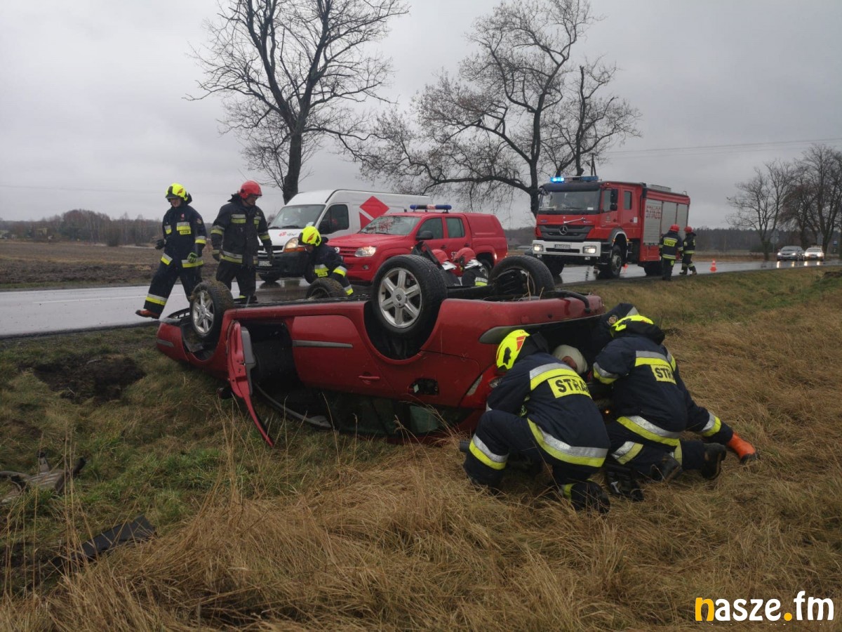W miejscowości Szadkowice na trasie ze Zduńskiej Woli do Szadku doszło do wypadku. Poszkodowana została kobieta, której auto dachowało.