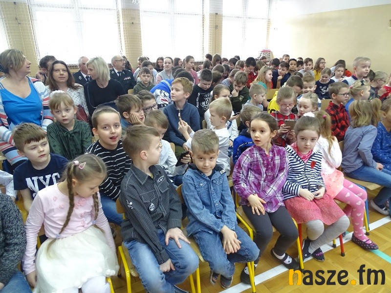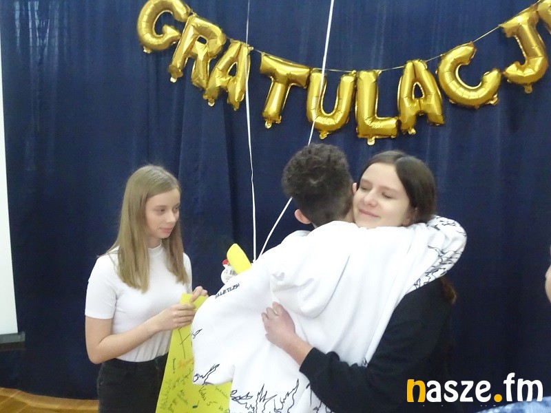 Społeczność szkolna przywitała Marcina bardzo hucznie, nie zabrakło owacji na stojąco, prezentów i wielu miłych słów: