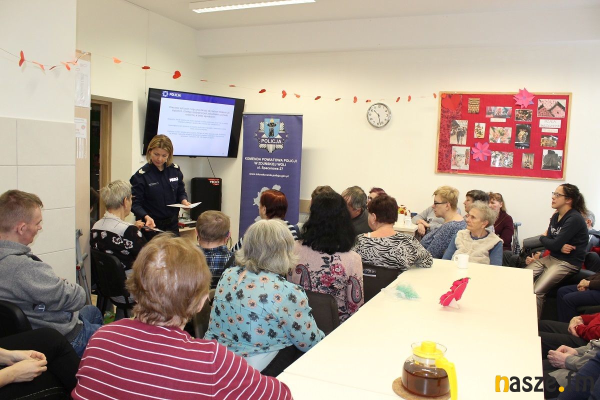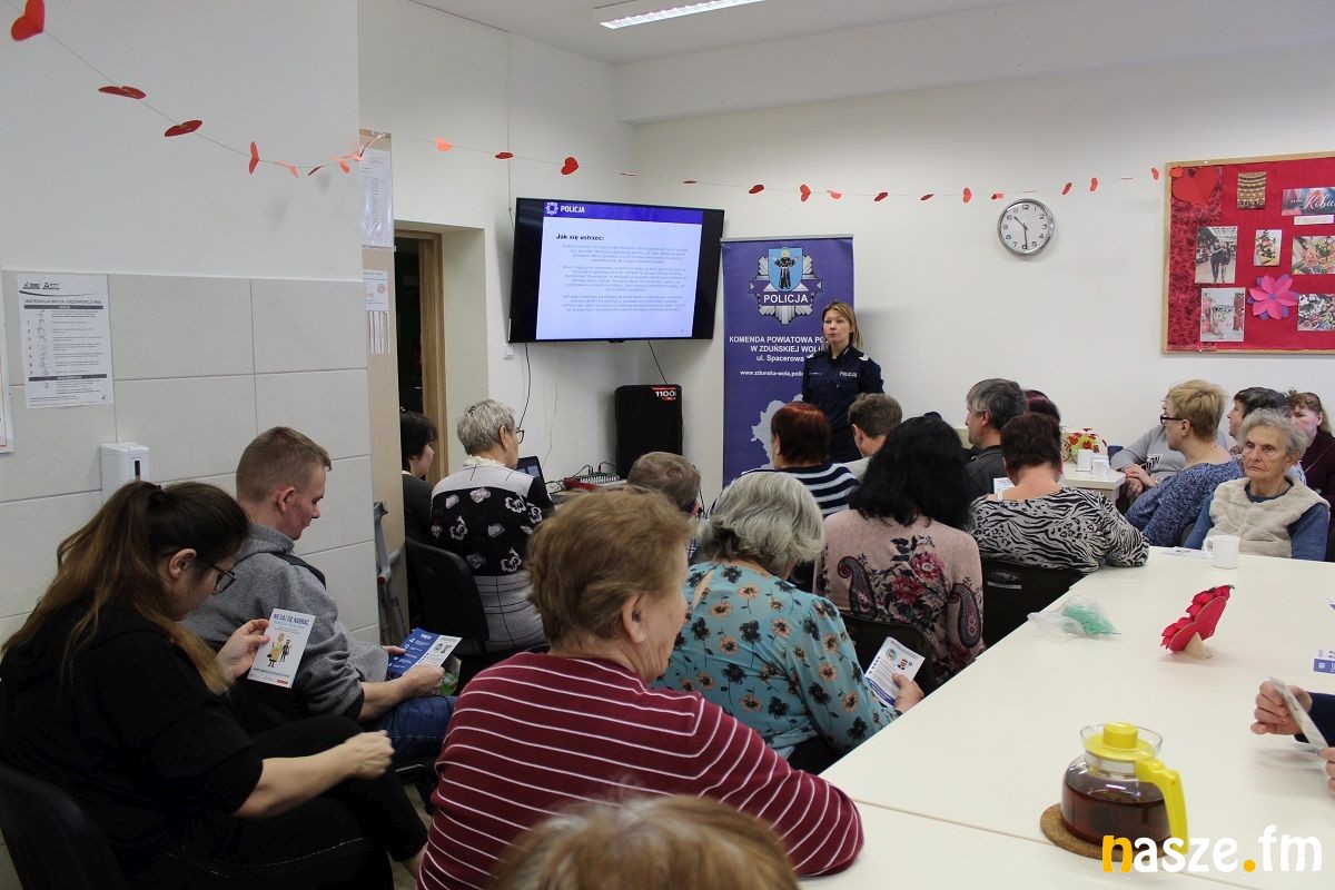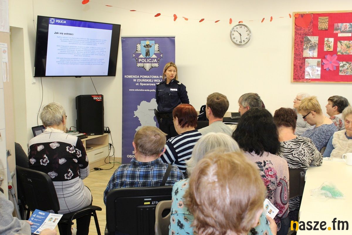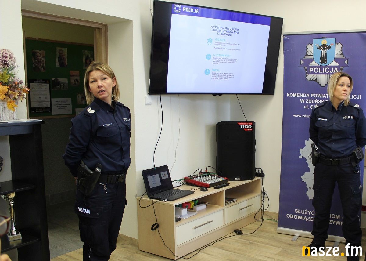 Podczas spotkania zorganizowanego w Środowiskowym Domu Samopomocy w Zduńskiej Woli policjantki przedstawiły seniorom metody i techniki manipulacji stosowane przez przestępców, którzy dopuszczają się oszustw i kradzieży. Przypomniały, że w dalszym ciągu zdarzają się sytuacje, że osoby starsze, tracą oszczędności w wyniku przestępstw dokonywanych metodami: "na wnuczka", "na policjanta" czy "na urzędnika".