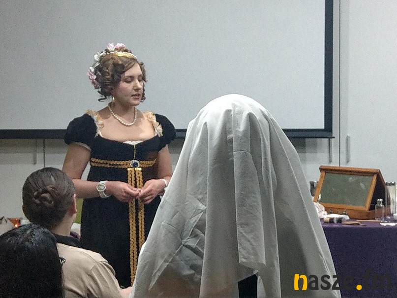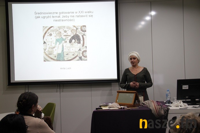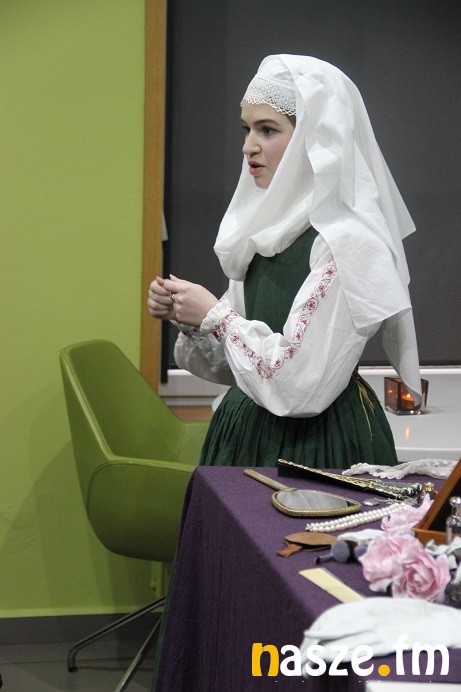 W sobotnie popołudnie można było w CIK-u dowiedzieć się sporo na temat kobiet i ich codzienności. Wykład o kobiecej bieliźnie w czasach nowożytnych, wygłosiła Marta Grzywna, zajmująca się rekonstrukcją sylwetki kobiecej w czasach staropolskich, a na co dzień pracująca jako przewodnik i animator w Muzeum Pana Tadeusza we Wrocławiu. Gwoździem programu była postać Marii Walewskiej, którą znakomicie odtworzyła Marta Voeil, blogerka i rekonstruktora czasów napoleońskich. Liczną publiczność zgromadziła jej mini inscenizacja, podczas której wcielając się w postać Walewskiej, wybierającej się na spotkanie z Napoleonem, opowiadała o poszczególnych elementach stroju z tamtego okresu. Na koniec można było posłuchać wykładu Anity Lach z Bractwa Rycerskiego Ziemi Sieradzkiej, która opowiedziała o tajnikach kuchni średniowiecznej. Podczas tegorocznej edycji imprezy nie zabrakło oczywiście degustacji podtraw na bazie dawnych receptur, które przygotowane były z udziałem Koła Gospodyń Wiejskich z Chojnego. Była z piwna polewka, cebula w sosie cydrowym, staropolskie pączki oraz ciasto.Czynne też były stanowiska animacyjne, tym razem z kobiecą bielizną dawną i elementami toaletki, o których opowiadały rekonstruktorki, a także warsztaty kaligraficzne oraz stoisko z rycinami do kolorowania dla dzieci.