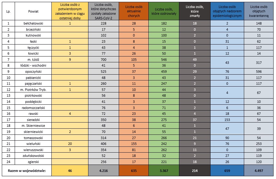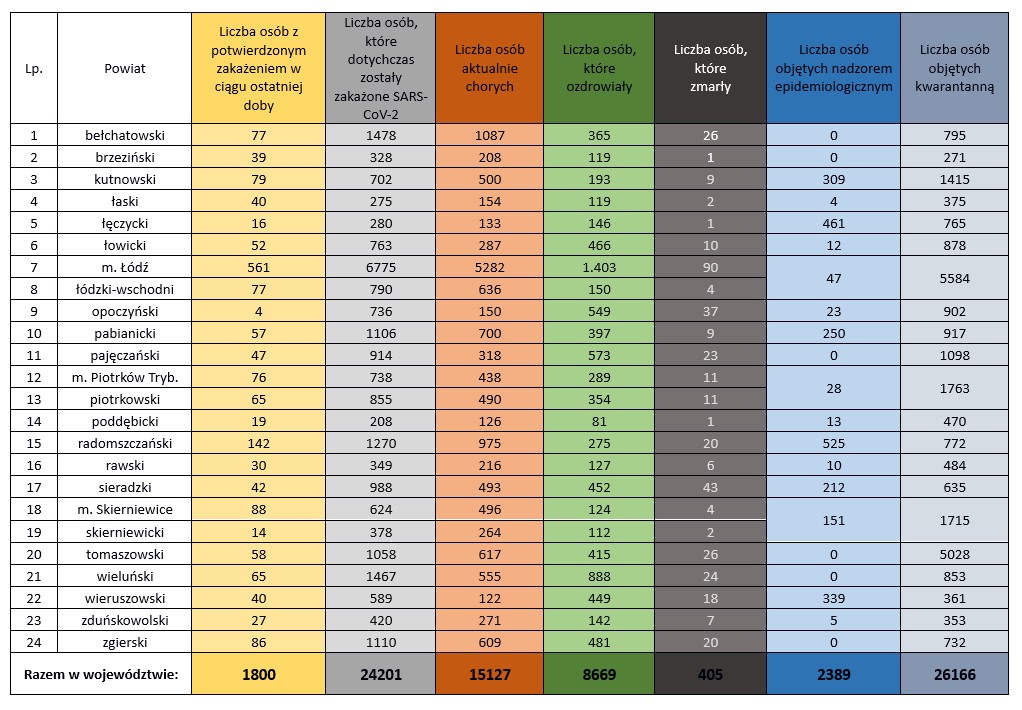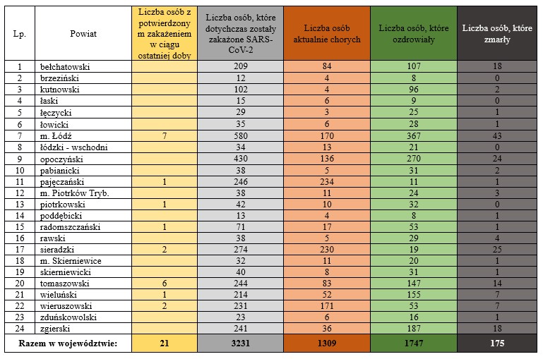 Są również dobre wiadomości dla mieszkańców województwa łódzkiego. 3 kolejne osoby, które były zakażone koronawirusem, po leczeniu otrzymały 2 wyniki ujemne i są zdrowe. To jeden młody mężczyzna oraz mężczyzna w średnim wieku oraz kobieta w średnim wieku.