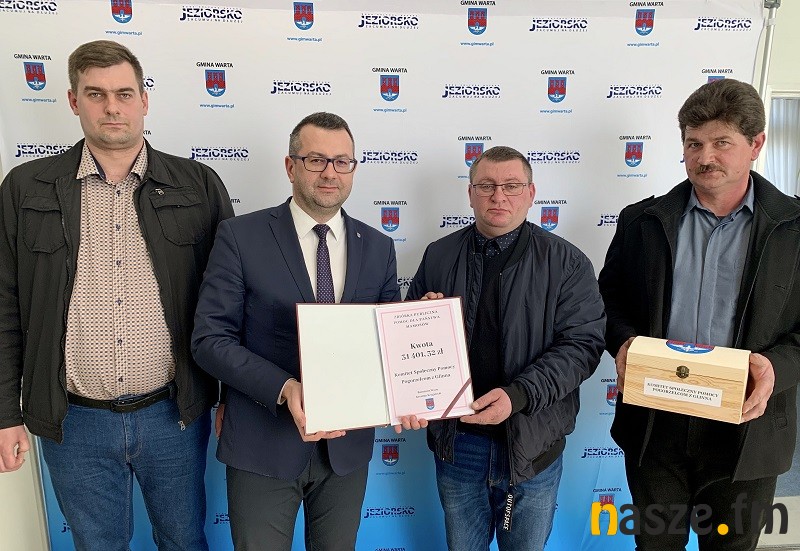 W Urzędzie Miejskim w Warcie oficjalni przekazano dziś pieniądze zebrane przez mieszkańców miasta i gminy na rzecz rodziny pogorzelców z wsi Glinno. To ponad 30 tys. zł.