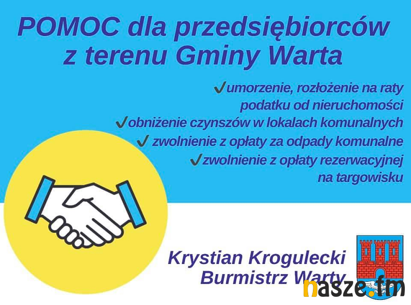 W związku z sytuacją kryzysową w kraju i regionie burmistrz Warty wprowadza ulgi dla przedsiębiorców zarejestrowanych na terenie tejże gminy.