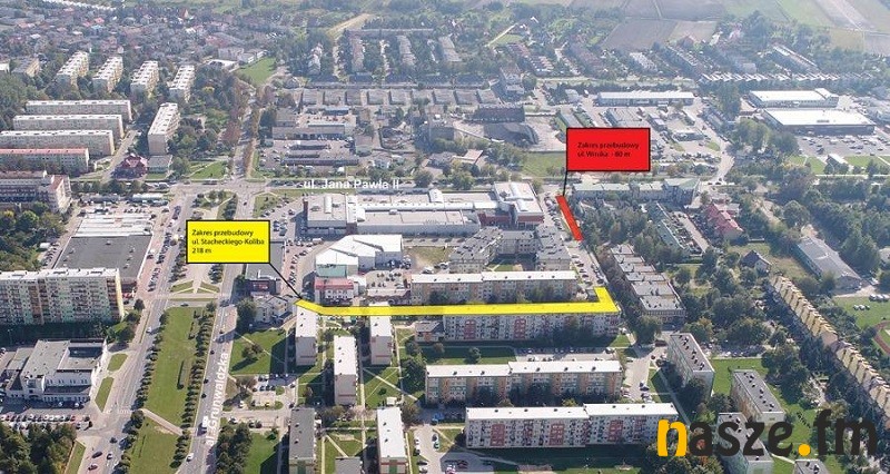 Uzupełnieniem prac prowadzonych na ul. Stacheckiego-Koliba będzie budowa łącznika ul. Wnuka z ul. Jana Pawła II. W tym przypadku chodzi o odcinek długości nieco ponad 80 m. Ciąg pieszo-jezdny będzie składał się z jezdni o szerokości 5,5 m i chodnika (2 m szerokości), który będzie kontynuacją obecnego ciągu prowadzącego wzdłuż Przedszkola nr 15.