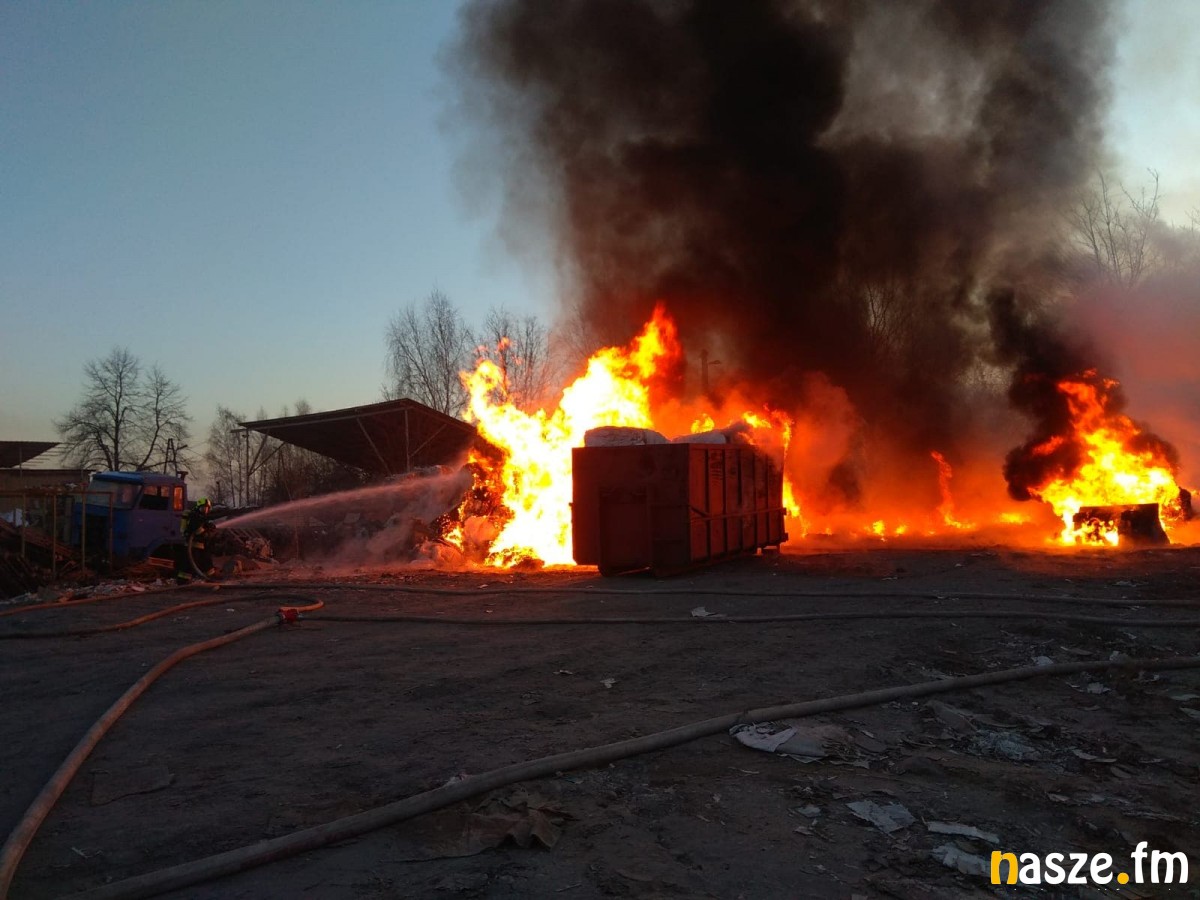 - Dziś nad ranem około godz. 05.45 dostaliśmy zgłoszenie o dużym zadymieniu w miejscowości Szadek. Na miejsce zadysponowano pierwsze zastępy. W trakcie dojazdu ustalono, że mają miejsce 2 pożary w odległości około 300 m od siebie. Pierwszy z nich był w miejscowości Starostwo Szadek, paliły się tworzywa sztuczne zmagazynowane na placu. W sumie paliło się około 18 ton sprasowanego tworzywa sztucznego oraz stojąca na placu przyczepa warsztatowa. Właściciel określił straty na około 10 tys. zł. Działania straży polegały na zabezpieczeniu miejsca zdarzenia oraz ugaszeniu pożaru przy użyciu 4 prądów wody. Przy tym zdarzeniu brały udział 2 zastępy z JRG Zduńska Wola, 6 zastępów z OSP KSRG (2 z OSP Szadek, 2 z OSP Zborowskie, 1 z OSP Wilamów, 1 z OSP Janiszewice) oraz 1 zastęp z OSP Przatów. Na miejscu pracowały również 2 patrole policji. W tym zdarzeniu nie było osób poszkodowanych - informuje Łukasz Aleksandrowicz z Państwowej Straży Pożarnej w Zduńskiej Woli.