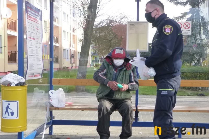 Strażnicy miejscy przy współpracy z Miejskim Ośrodkiem Pomocy Społecznej w tym mieście ruszyli z akcją rozdawania maseczek ochronnych osobom bezdomnym.