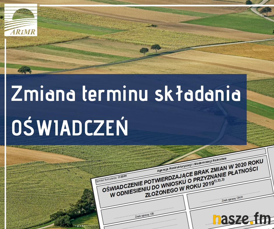 Ze względu na trwający stan epidemii ulega zmianie termin na złożenie oświadczenia potwierdzającego brak zmian w 2020 roku w odniesieniu do wniosku o przyznanie płatności złożonego w roku 2019.